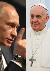 Left: President Vladimir Putin. Right: Pope Francis. (Credit: The Globalist. CC BY-NC-SA)