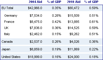 Against this good news, a number of countries have pledged very modest increases. These include Japan (0.18% to 0.22%) and the United States (0.16% to 0.18%), the two largest donors in 2004.