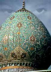 For the meantime, I was content to arrive safely at the hotel (formerly a Hyatt, since renamed “Azadi,” meaning freedom), go up to my room with a view of the Alborz Mountains, climb into the huge bed, and fall asleep gazing up at the arrow on the ceiling pointing the way to Mecca.