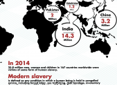 Five countries account for over 60% of the 35.8 million people worldwide trapped in modern slavery.