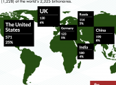 Just six countries account for more than half (1,228) of the world’s 2,325 billionaires.