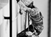 An man from the slums of India makes his living by doing the dangerous work of painting high-rise towers in Kolkata.