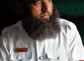 Travelers gazing out of the Khyber Mail train’s windows in Pakistan.