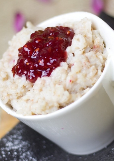If you want to leave the house, set the oven at its lowest heat. Bring all the ingredients to the boil in a pan, then pour them into a buttered baking dish and bake the rice pudding for 5 hours.
