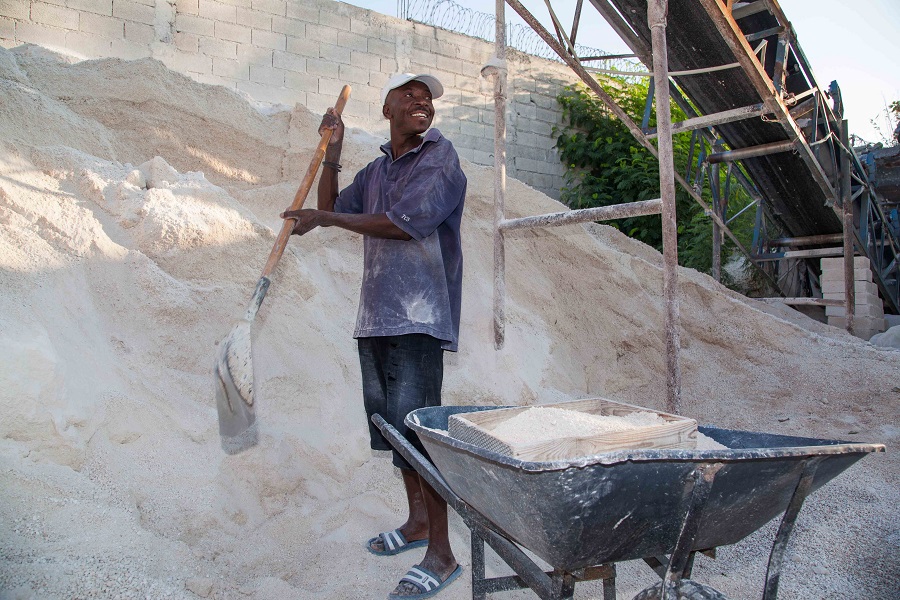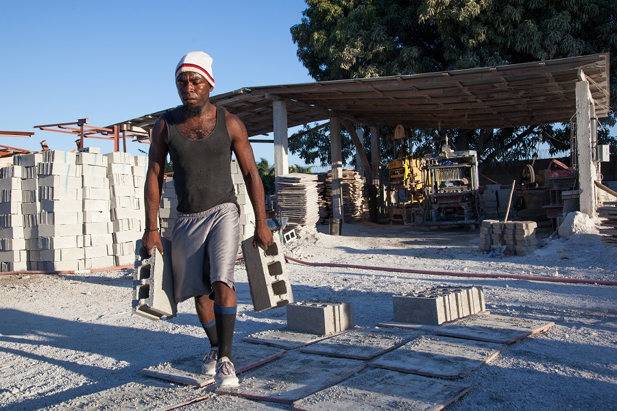 Like many other people in the city, she was horrified that one of the main reasons why 250,000 buildings had collapsed was the poor quality of construction materials. A civil engineer in her late 40s, her firm – whose name means “nice house” in Haitian Creole – now employs a dozen workers making high-quality blocks.