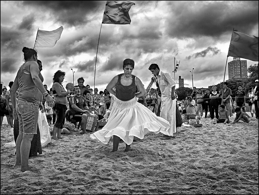 Candombé music, an inheritance of Montevideo’s Afro-Uruguayan population, plays throughout the day. Dancers moves in circles, searching for the trance that will help them connect with Yemanjá.