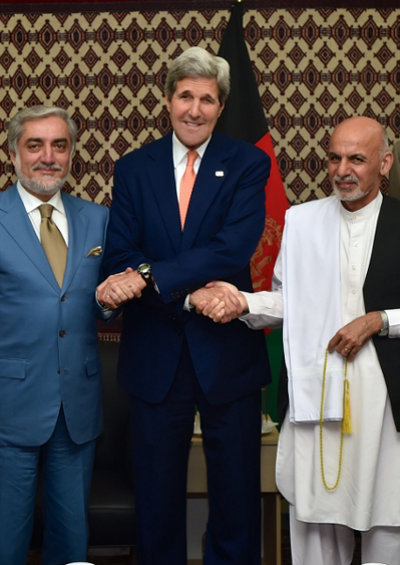 Under the tutelage of Kerry, Afghanistan’s two presidential candidates, Ashraf Ghani and Dr. Abdullah Abdullah, reportedly agreed to a U.S.-arranged deal for the formation of a national unity government after the results are announced.