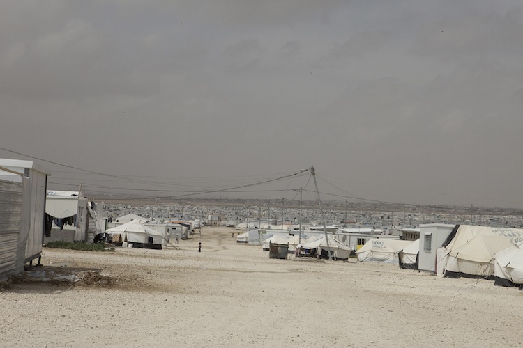 The vast, monotonous expanse of the Zaatari refugee camp in Jordan. It is the second largest refugee camp in the world, with more than 100,000 Syrian refugees. More than half the population of the camp is composed of women and children.