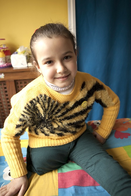 This 8-year-old girl lost her right leg after a tank shell landed in her house in Daraa. She is receiving treatment at the Bader Center in Amman – a non-profit organization – for over six months. The center provides medical care and psychological support for children and women who are victims of war. She is waiting to receive a prosthetic leg.