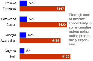 As the table suggests, many low-income countries offer inexpensive Internet connections. But others charge mind-boggling fees.