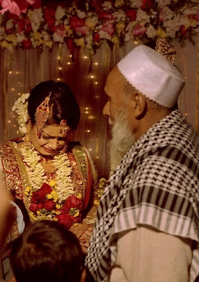 Lakhi and Firoz knew each other for four years before they married. In keeping with tradition, after the wedding Lakhi will move to live with her husband and his family. Tears to mark the bride’s separation from her family are an expected part of the ceremony.