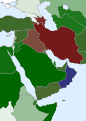 Map: Shia heartland (red) and Sunni-majority neighbors (green). Credit: Wikimedia