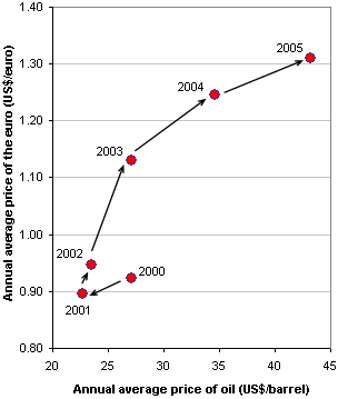 One important fact about oil consumption is usually overlooked — the oil price in dollars has risen much more than the price of oil in euros or even in yen.
