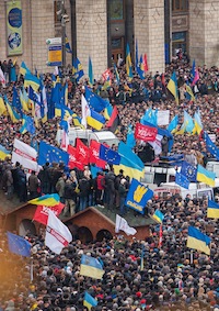 Euromaidan anti-government protests in Kiev, December 2013. (Credit: Nessa Gnatoush - Wikimedia)