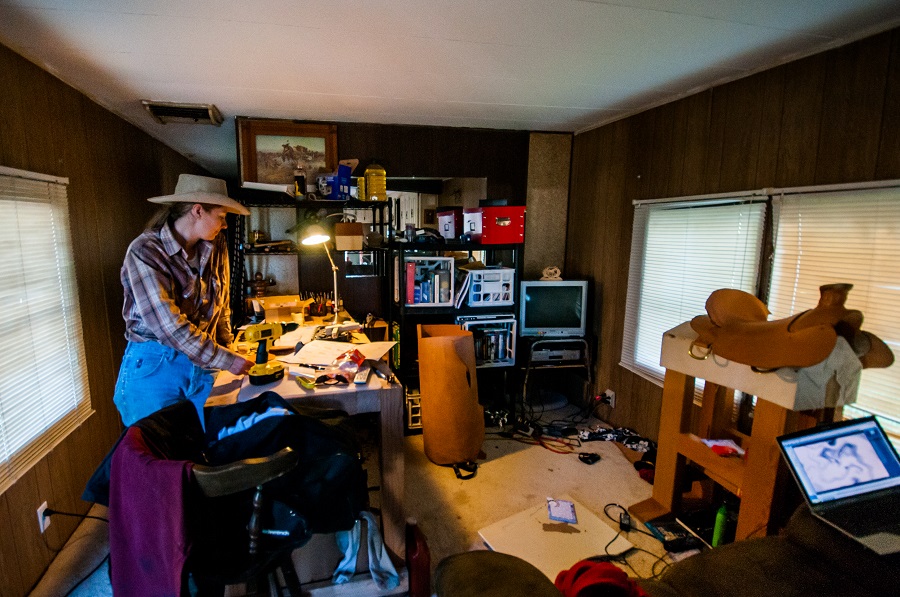 Megan spends most of her evenings in the trailer making saddles, a craft practiced by her family for generations. She has only recently starting using a computer and even now doesn’t have her own email address.