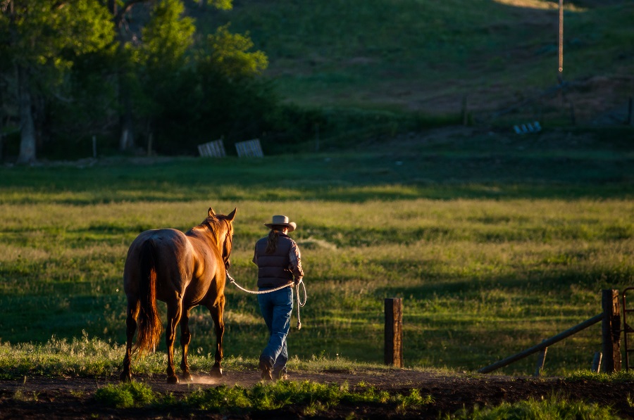 Her job is to take care of the cattle. Every morning, she gets up early and lets the ranch’s 20 or so horses out of their barns, then drives its herd of a few hundred cattle to fresh pasture.